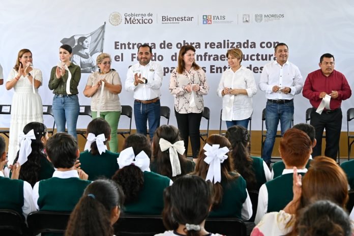 Reafirmando el compromiso del Gobierno de Morelos con el desarrollo social y educativo, la gobernadora Margarita González Saravia encabezó la inauguración y entrega oficial del techado de la cancha de usos múltiples en la Escuela Telesecundaria Naciones Unidas, ubicada en la localidad de San Antonio Chiverías, en el municipio de Zacatepec.