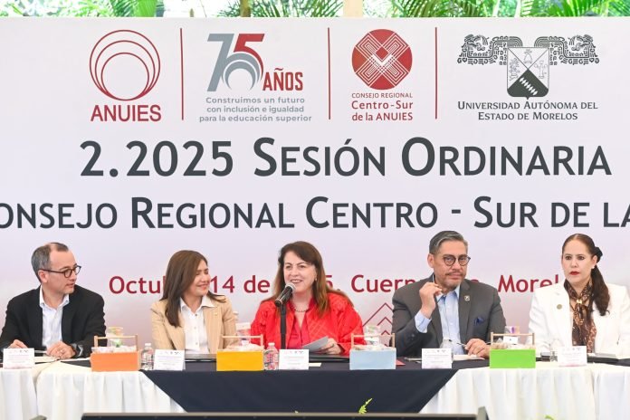 La gobernadora Margarita González Saravia inauguró la Segunda Sesión Ordinaria 2025 del Consejo Regional Centro-Sur de la ANUIES, celebrada en el Centro Universitario Los Belenes de la Universidad Autónoma del Estado de Morelos (UAEM), con el objetivo de fortalecer la colaboración entre instituciones de educación superior.