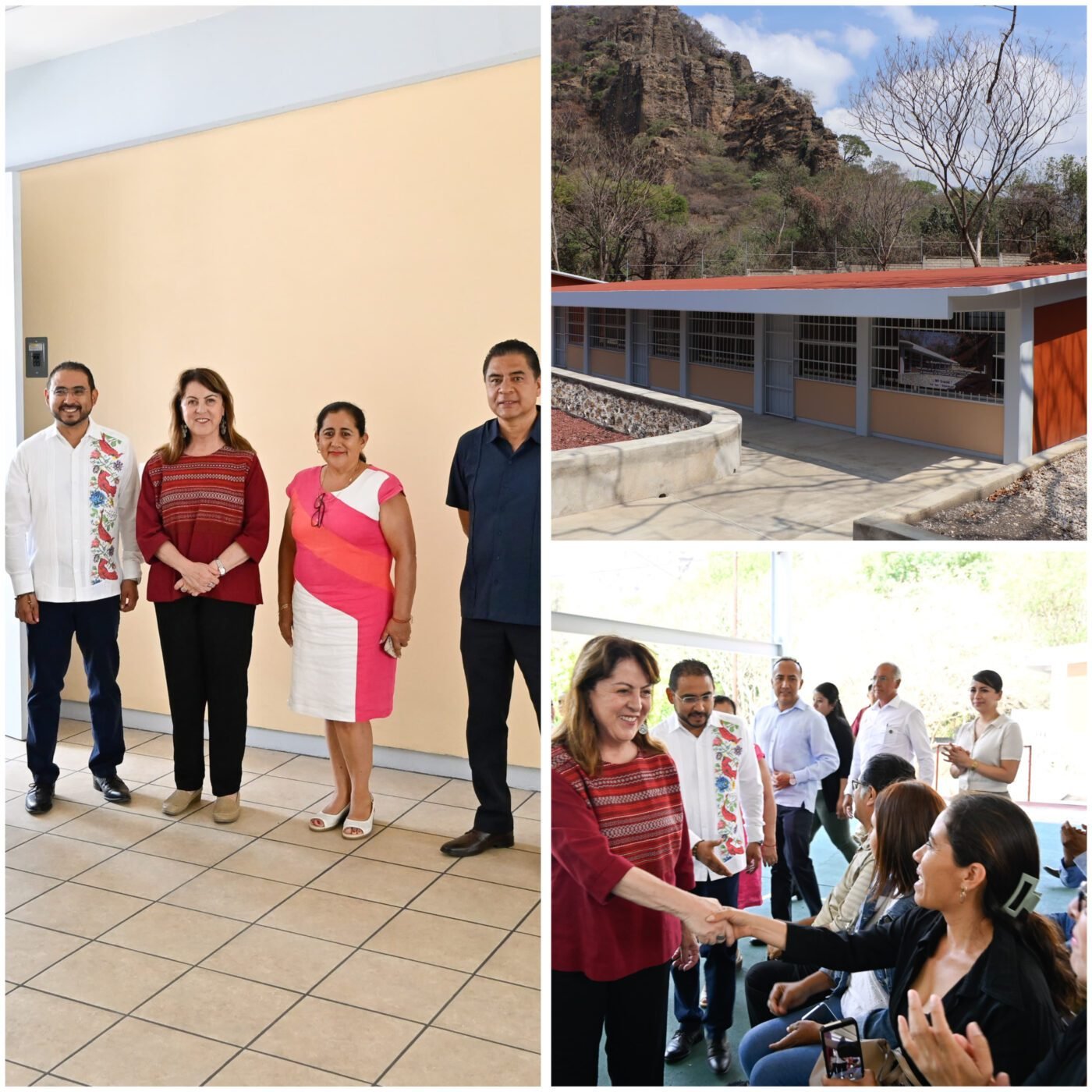 La gobernadora Margarita González Saravia inauguró en Tepoztlán tres nuevas aulas y obras complementarias en la Escuela Secundaria Federal Telpochcalli, ubicada en el barrio Santiago Tepetlapa.
